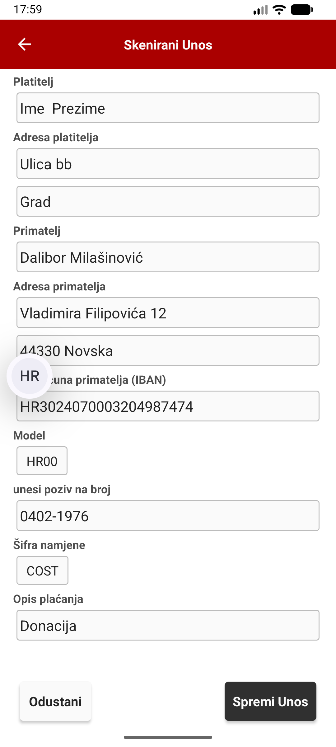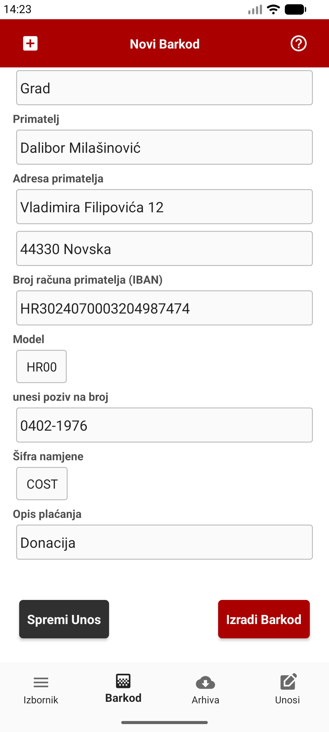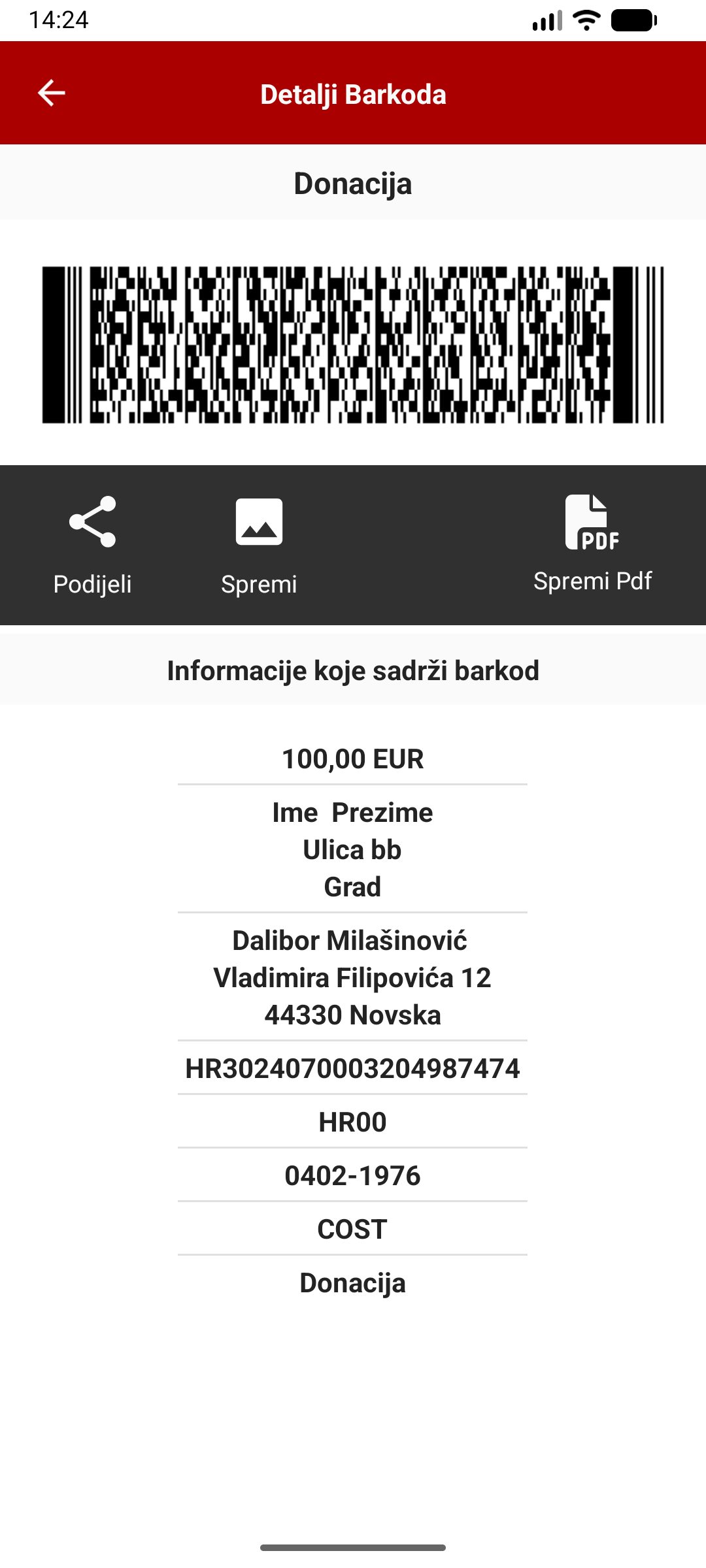 Izrađeni barkod možete podijeliti s drugim korisnicima koji ga mogu koristiti za plaćanje putem mobilnih aplikacija većine banaka.
