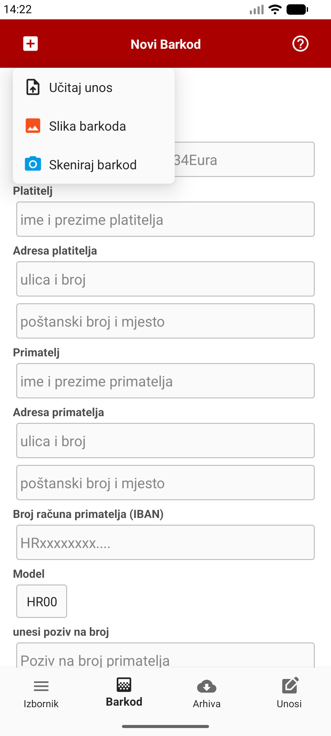 Aplikacija omogućuje jednostavno stvaranje 2D barkodova prema HUB3 standardu za brzo i praktično plaćanje računa ili ponuda.